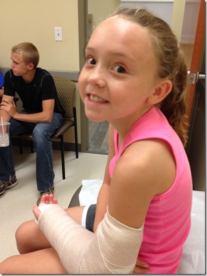 We go back next Monday for another set of x-rays to check on the healing. After that Dr. Goldfarb (whom we all LOVED!) will determine when we will be going to a short arm cast for a few weeks. We were hoping that Katie would be able to eventually transition to a waterproof cast, allowing her to be able to swim, but unfortunately the severity of the break isn’t going to allow that to happen. She needs super stability as her breaks heal and the waterproof casts don’t have as much support as the fiberglass casts. Katie was super disappointed. We were too, for her, but also so thankful that today’s visit was overall positive in that we don’t have to do another surgery or anything like that.